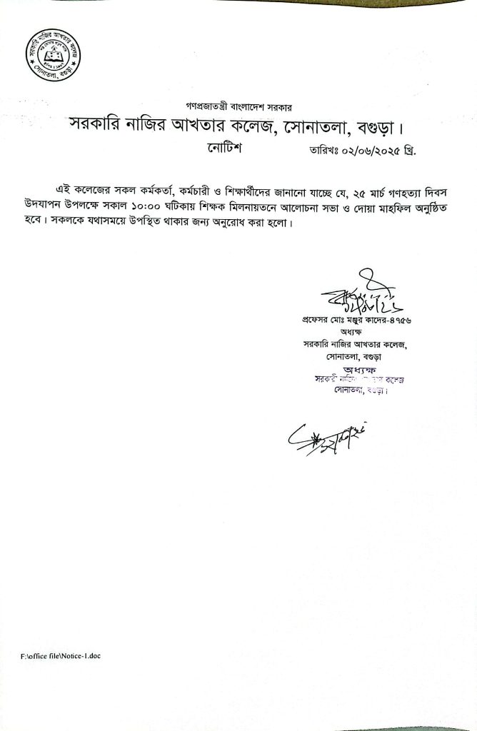২৫ মার্চ গণহত্যা দিবস উদযাপন সংক্রান্ত নোটিশ